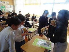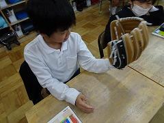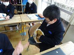 大谷翔平選手のグローブ、今日は4年3組の教室に回っていました。一人一人手にはめて、夢のグローブの感覚を味合わせていただいています。「これなら野球がうまくなりそうだ」、「野球をやってみたい」などと、話していました。