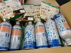↓大阪の水や名古屋市からのアルファア化米を、津幡町からいただきました。防災食について各学級で説明を聞いて、本日児童が持ち帰りました。アルファ化米の中には、乾燥剤が入っていますので、取り出してから調理してください。