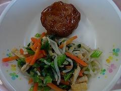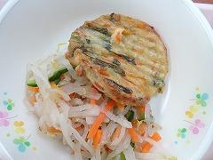 ↓今日の給食は中華料理でした。チヂミ、じゃんじゃん豆腐、中華風大根サラダ、おいしくいただきました。