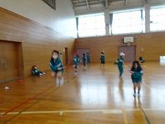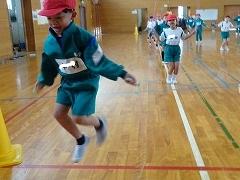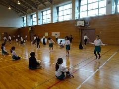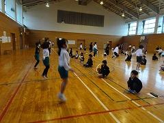 ↓体育館では5年生が2分間跳びにチャレンジしました。