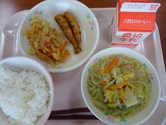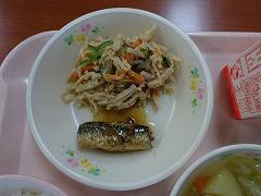 ↓今日の給食は、いわしの味噌煮、切り干し大根の胡麻マヨ和え、塩豚汁でした。食物繊維がたっぷりの和食メニューです。