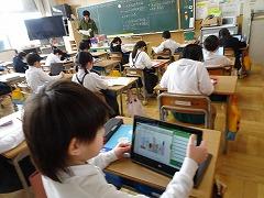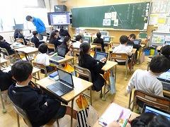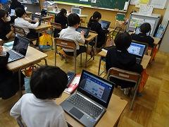 ↓1年生はクロムブックを用いて、算数のお話問題を解きました。