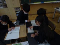 ↑5年生は、2月の会に向けて、何やら企画をしています。グループで相談しながら、アドバイスをもらい、自分たちの考えで進めています。「自分から」を意識して、5年生の力を結集して創り上げようと動き出しています。