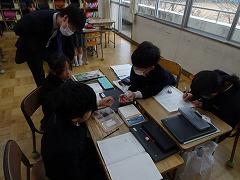 ↓4年社会 伝統工芸の学習で九谷焼の種類を調べ、どれがお気に入りか選びました。