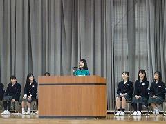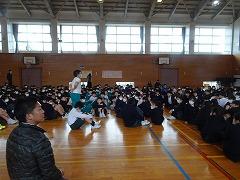 ↓朝休み、体育館で英語スピーチコンテストの練習です。堂々と話せるようにがんばっています。