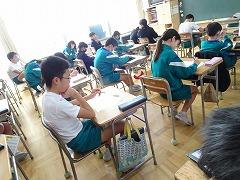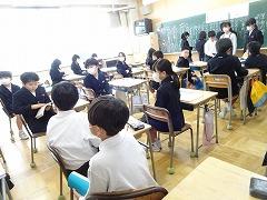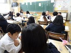 ↓4年生が5年生の国語の授業を見て、学び方を学びました。あと2か月で5年生、スピード感や集中力、対話の内容、だれとでも対話できる人間関係のよさ等、見て学ぶことはたくさんありました。「百聞は一見にしかず」、学んだことをすぐに実践して、さらに高学年に向けて向上していくことでしょう。下級生のお手本になる授業をできるということは、これまで、真剣に学び方を高めてきた成果ですね。