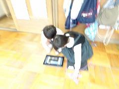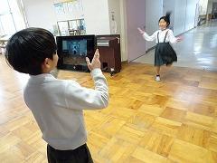 ↓1年生 縄跳び互いにクロムブックで撮影していました。