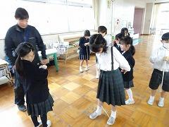 ↓6年生と1年生の合同体育を行いました。6年生が1年生に大縄跳びのコツを教えてあげるためです。6年生は優しく丁寧に声掛けをして教え、そのおかげで、1年生はぐんぐん上達しました。