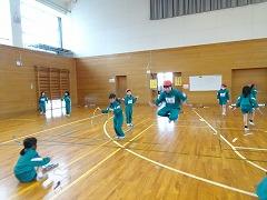 ↓年体育 縄跳び運動 飛び入りの先生も、子供たちと縄跳びを楽しみました