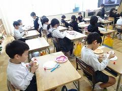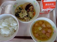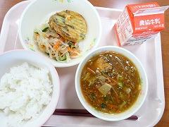 ↑今日の給食は、チーズクッペ、花野菜サラダ、コーンポタージュ、若どりのもも照り焼きでした。6年生のある児童は、「おいしすぎて、もったいないので、ゆっくり味わって食べました」と言っていました。今日もおいしい給食をありがとうございました。