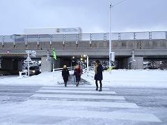 ↓早くから除雪をしていただき、ありがとうございます。雪道は1列で歩き、横断歩道は滑りやすいので、気を付けて渡ってください。