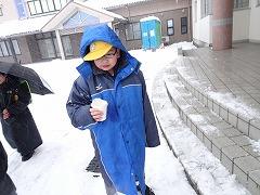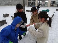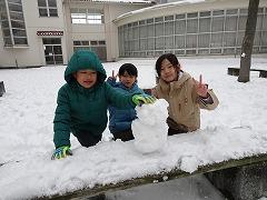 ↓中庭では、雪遊びです。かわいい雪だるまと、ハイ、ポーズ!