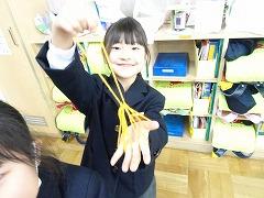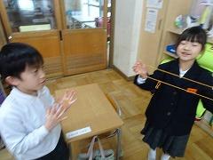 ↓1年生 生活科 昔遊びに挑戦です。コマ回しやあやとりを楽しみました。あやとりが上手でびっくりしました。