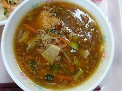 ↓今日の給食は中華料理でした。チヂミ、じゃんじゃん豆腐、中華風大根サラダ、おいしくいただきました。