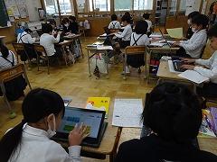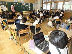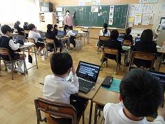 ↓1年生はクロムブックを用いて、算数のお話問題を解きました。