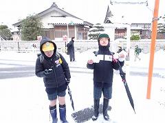 ↓中庭では、雪遊びです。かわいい雪だるまと、ハイ、ポーズ!