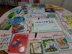 ↓週末読書、本を借りて心を豊かにしてください。図書館には新しい本もたくさん入っています。「4年生の本棚」、教室前に出張本棚がありました。手に取って読んで、どしどし借りてください。