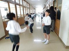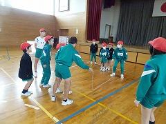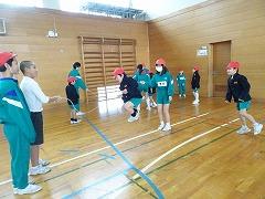 ↓6年生と1年生の合同体育を行いました。6年生が1年生に大縄跳びのコツを教えてあげるためです。6年生は優しく丁寧に声掛けをして教え、そのおかげで、1年生はぐんぐん上達しました。