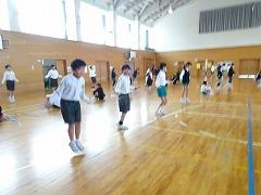 ↓体育館では5年生が2分間跳びにチャレンジしました。