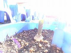 ↓1年生が新1年生のために植えたチューリップ、寒い冬を乗り越えて、芽を出しています。春は確実に近づいています。