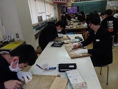 ↓6年図工 彫刻刀を用いての作品づくりです。安全には十分気を付けて作業をしています。