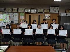 ↓英語スピーチコンテストに出場した皆さんです。努力と挑戦の心を称え、表彰しました。世界に羽ばたく人材となるために、これからも英語の学習に励んでください。