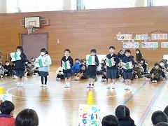 ↓プログラム4番、1年生の出し物、「くじらぐも~6年生の届け『ありがとう』」です。
