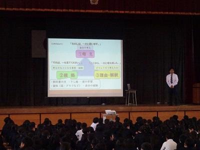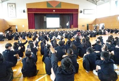 1限目に全校集会を行いました。たくさんのお話が次々とありましたが,みんな姿勢よくしっかりお話を聞いていました。