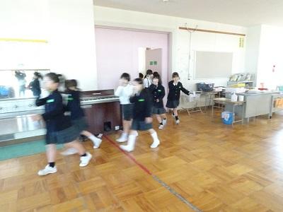 防火扉を一人一人が自分の手で押さえながら逃げ道を確保して避難する訓練でした。ハンカチを口元に当てながら,もう一方の手で扉を支え逃げるのは難しそうでしたが,子供たちは真剣に取り組んでいました。