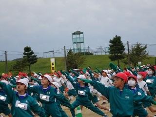 ↓ 運動会の練習を始めています。3年生・4年生の「条南のディスタンス」です。レースのルール説明を聞いて、練習してみました。