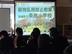 ↓6年生の薬物乱用防止教室を開催しました。講師は北陸大学薬学部 教授の 宇佐見 則行 先生です。毎年継続して本校にご来校いただき、卒業間近の6年生に授業をしてくださっています。今、子供たちのすぐ隣には大麻などの薬