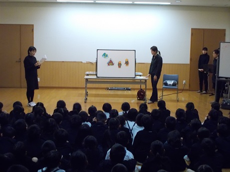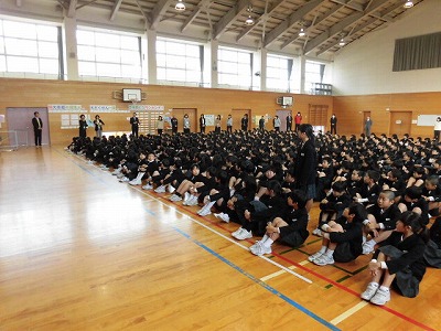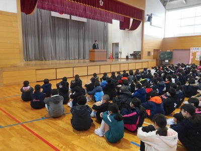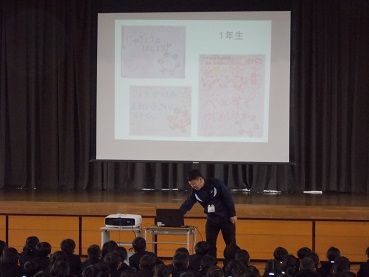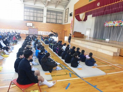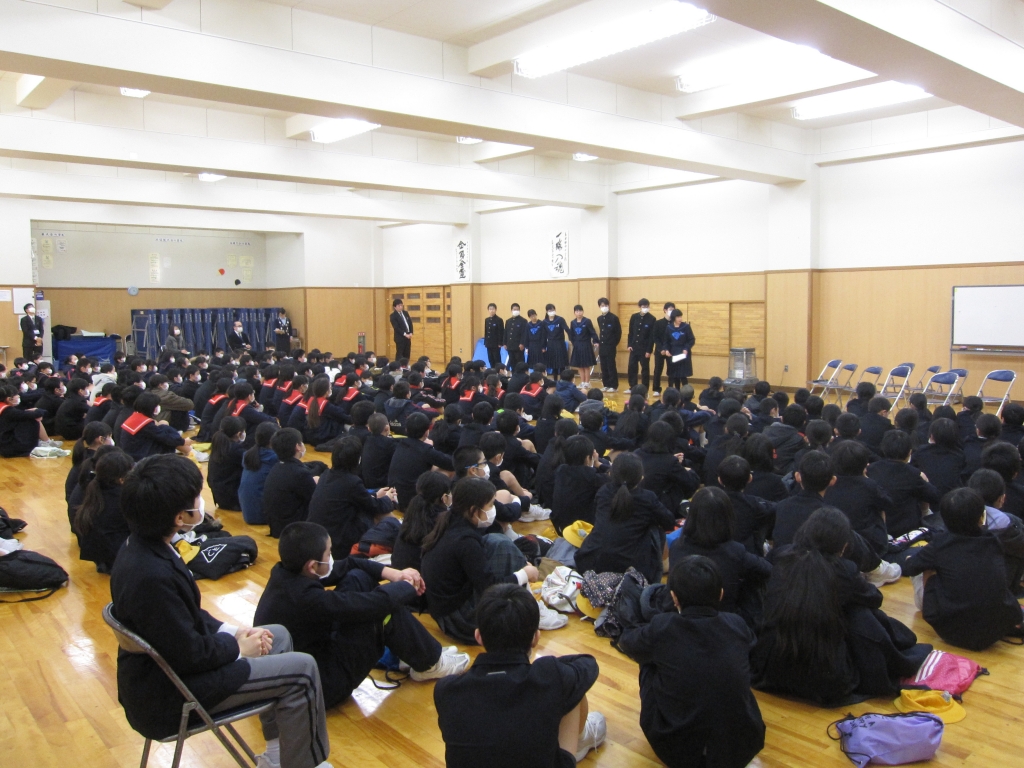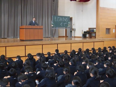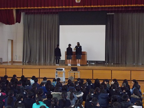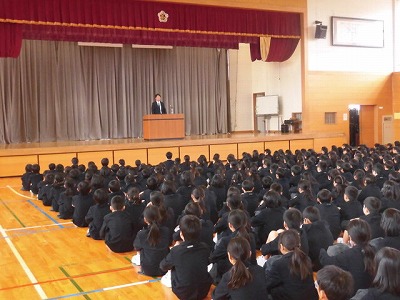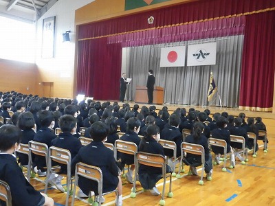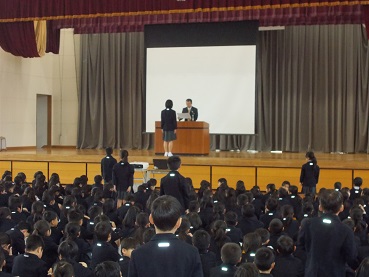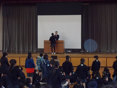 生徒指導の先生からは,1月の生活目標についてのお話でした。1月は,「廊下歩行を完璧にしよう!」です。みんなで落ち着いた学校生活を送れるように取り組んでいきたいと思います。