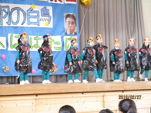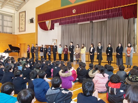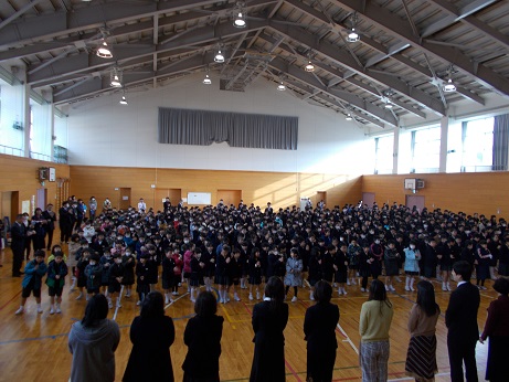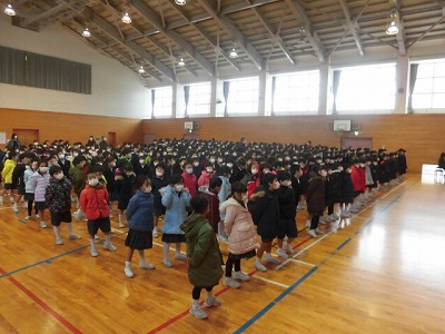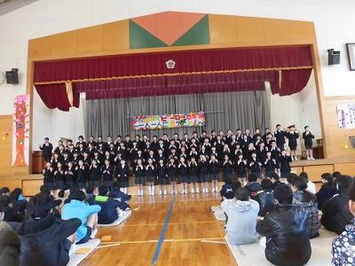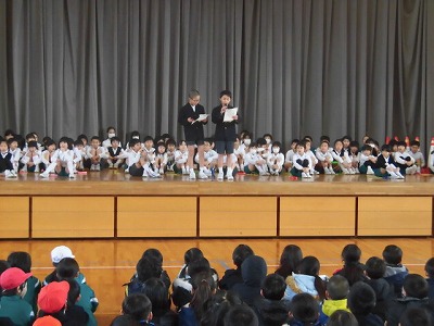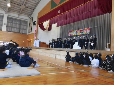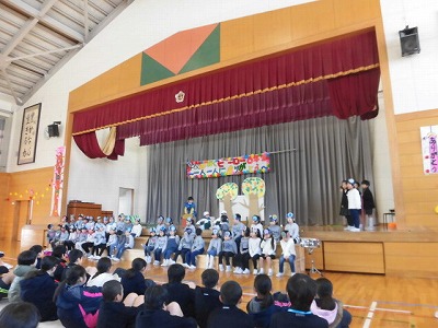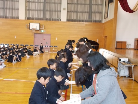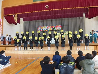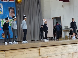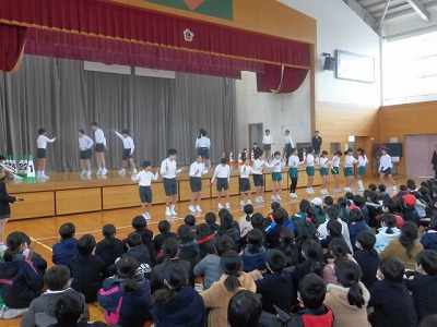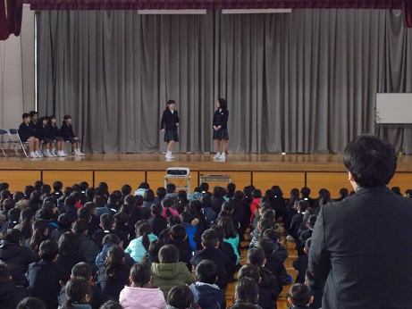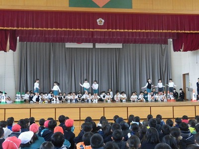 今までお世話になった6年生に感謝の気持ちを伝えるために、5年生を中心に1~4年生の出し物、そして6年生からのお礼の歌声が体育館に響きわたりました。