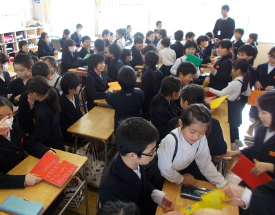 2年生から6年生へ「送る会の招待状」を渡しました。