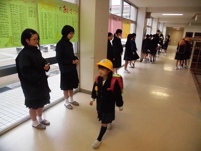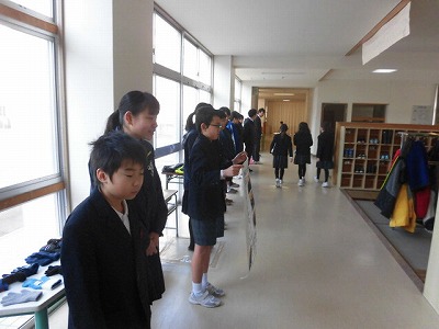 雨も降り,寒い中でしたが,中学校の生徒会と条南小の計画委員会の合同あいさつ運動でいつも以上に玄関が明るくなっていました。温かいあいさつがあふれていました。