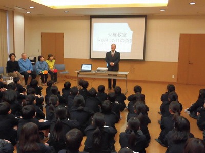 今日の5時間目に5年生で,「人権教室~ありったけの勇気~」がありました。人権とは,人間に与えられる平等や自由などの権利のことである。人間が幸せに,仲良く暮らしていくためには必要な権利です。今日は,その権利について学習しました。