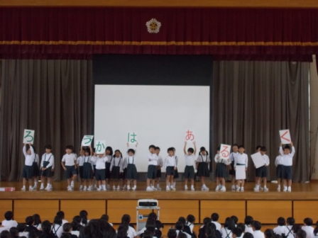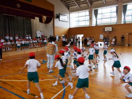 2・3時間目、1年生が生活科の学習で「秋となかよし集会」を行いました。