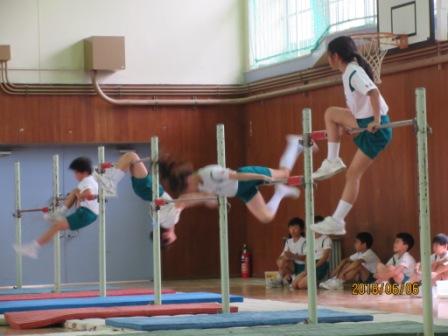 いろいろな技に挑戦する児童や記録や回数に挑戦する児童など一人ひとりめあてをもって練習しています。