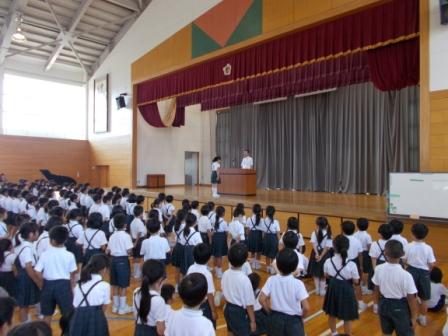 校長先生は,朝の登校時の素敵な行動を紹介してくれました。下級生を上級生がお世話をする姿や傘を正しく片付ける思いやりの行動,礼儀よくあいさつをする姿を広めてくださいました。