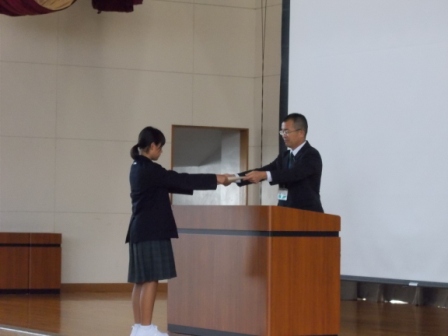 始業式では,校長先生や生徒指導の先生からのお話,英語スピーチコンテストの校内発表会がありました。