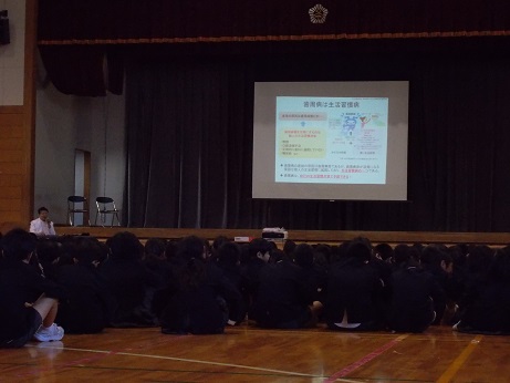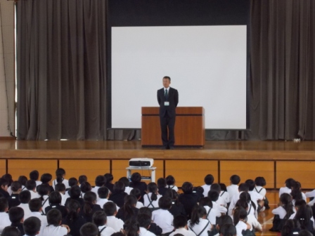 生徒指導の山口先生から今月の生活目標についてのお話がありました。