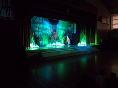 「3匹のこぶた」やクリスマスも近いこともあり、ブラックライトを使った光る「サンタが街にやってきた」など楽しいお話がたくさんありました。
