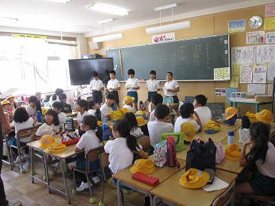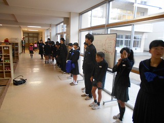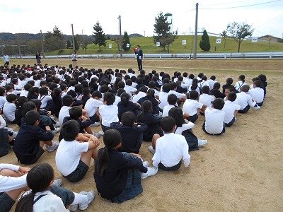 全校が運動場に避難し,校長先生の花をしっかりと聞いていました。正しい避難の仕方などを全校で確認しました。