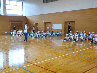 大森先生からは,運動能力が高まれば,学習能力も高まる可能性があるということや,走ったり投げたりする力を伸ばすトレーニング方法について教えていただきました。