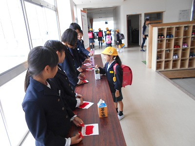 低学年を中心して,とても元気なあいさつをし,スタンプをゲットしていました。スタンプを集めていくと・・・「あいさつ名人」「あいさつ達人」「あいさつ王」になることができます。