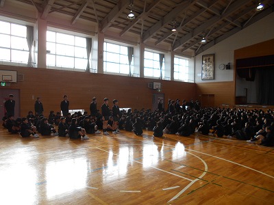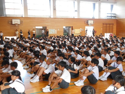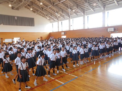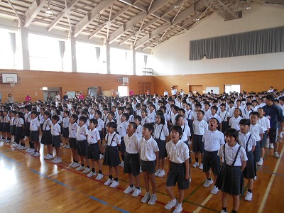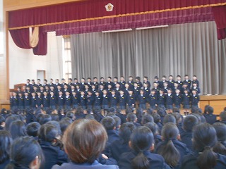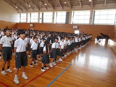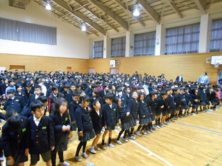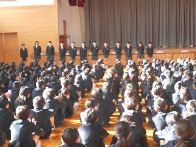 最後は,今月の歌「瑠璃色の地球」を全校合唱しました。美しい歌声が今月も体育館中に響き渡っていました。