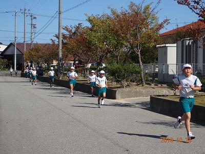 天気も晴れて,マラソン日和になりました。走ろう運動の成果を発揮しようと子ども達は,やる気に満ちていました。1年生は初めてのマラソン大会,6年生は小学校生活最後のマラソン大会などそれぞれのが目標をもってスタートラインに立っていました。