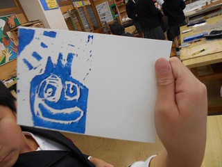 このスタンプは,子ども達が彫刻刀で条南小学校のイメージキャラクター「JONANくん」を彫って作ったオリジナルです。