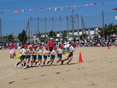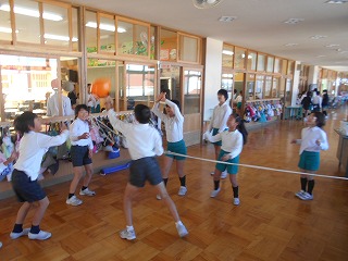 5年生は,6年生と共に下級生を引っ張り,棒を力いっぱい回したり,人一倍走ったりしていました。いいぞ5年生!!