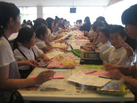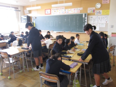 大学生のお手本をしっかり見て,お話を聞けていました。